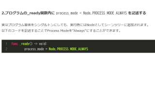 Godot 【Godot4】シングルトンをAlwaysで動作させる-ポーズ中もプログラムを止めない2つの方法- ゲームをポーズした時にシングルトンのプログラムも止まってしまいます。この記事では、シングルトンのプログラムがポーズしても止まらないようにする方法を解説します。 2026.01.10 Godotゲーム開発ブログ